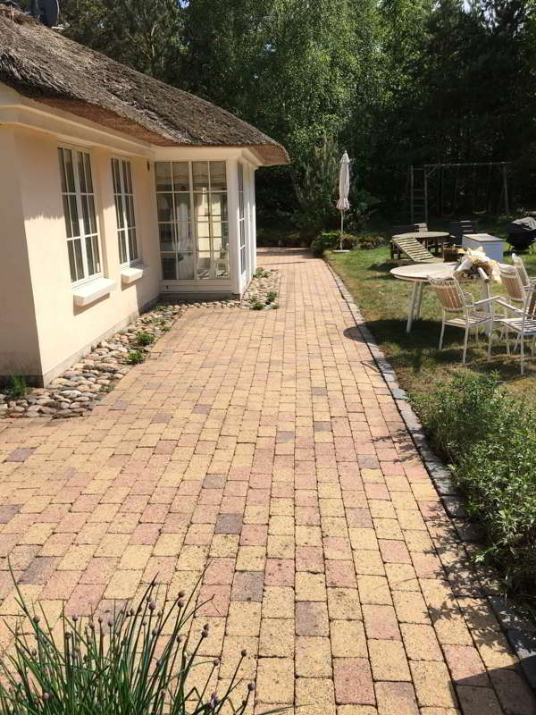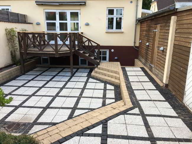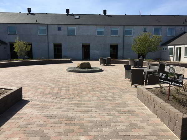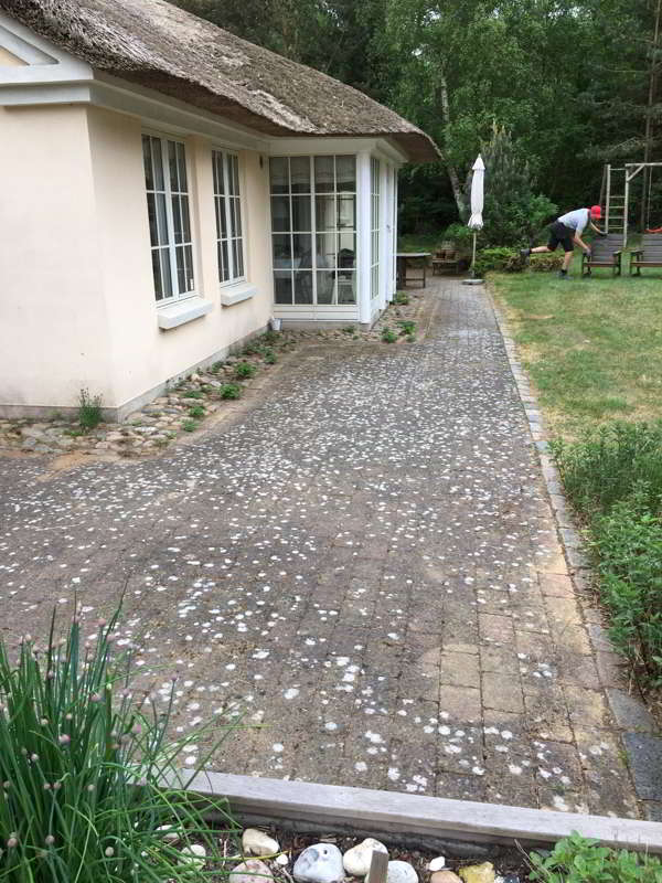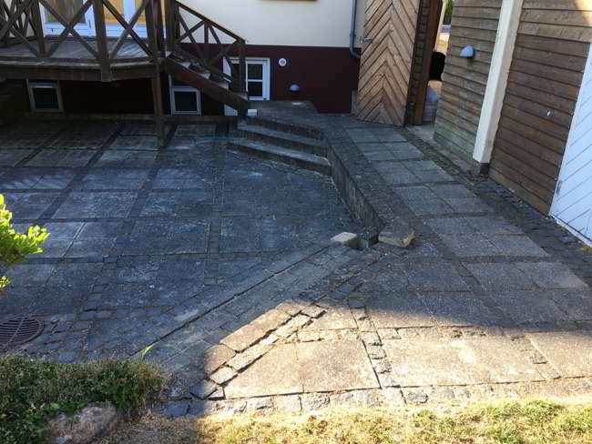 PM Anlæg ApS tilbyder rensning af fliser på terrasser, indkørsler m.m.